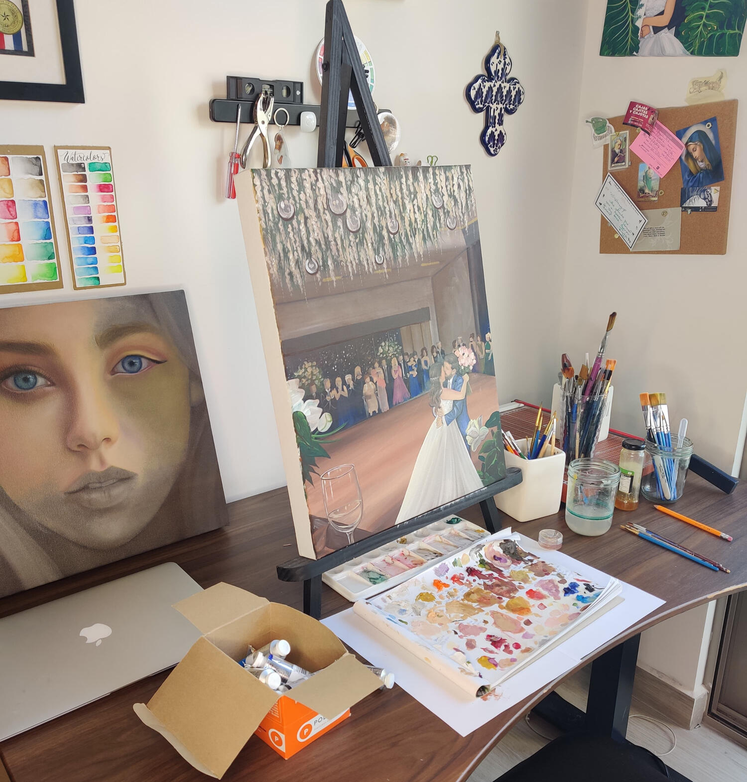 Pintura en vivo durante tu evento captando la escencia del momento más importante de tu día tan especial.Formato: 50x60x4.5cm